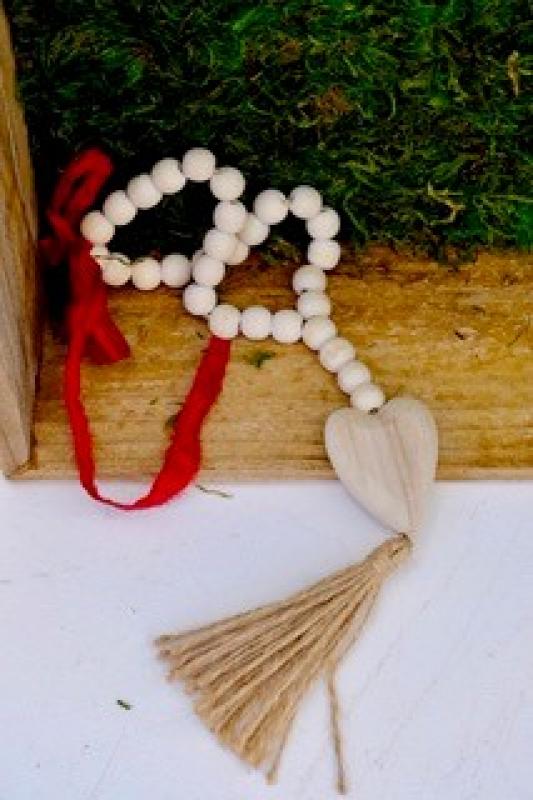 Wood Beads w/ Heart Jute Tassel