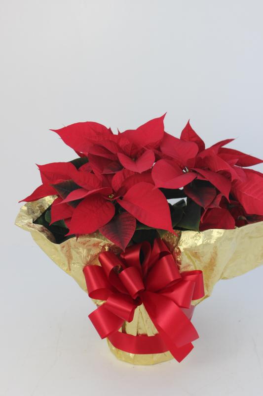 Please include details in your order to indicate your color preferences on poinsettia, foil, and bow.