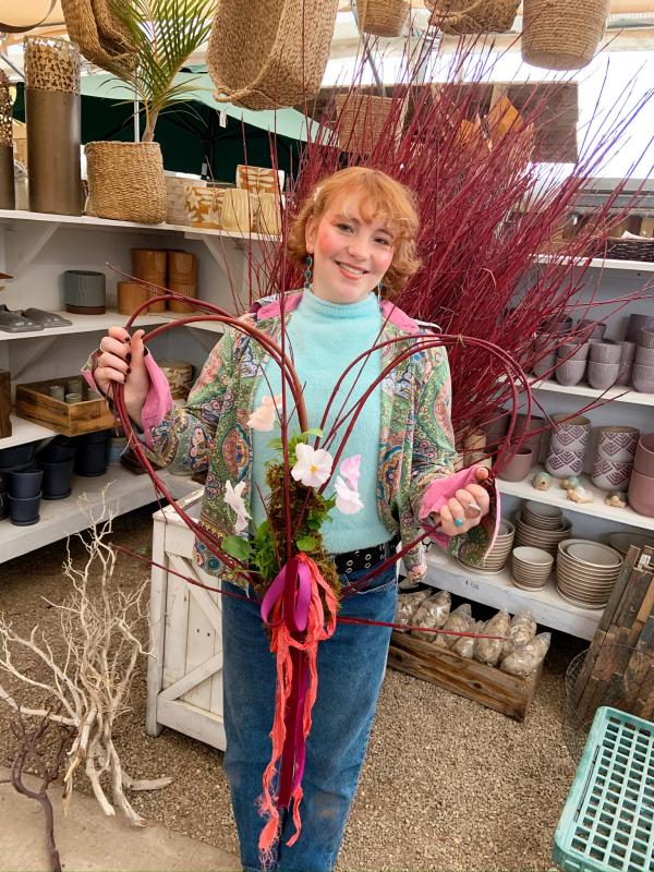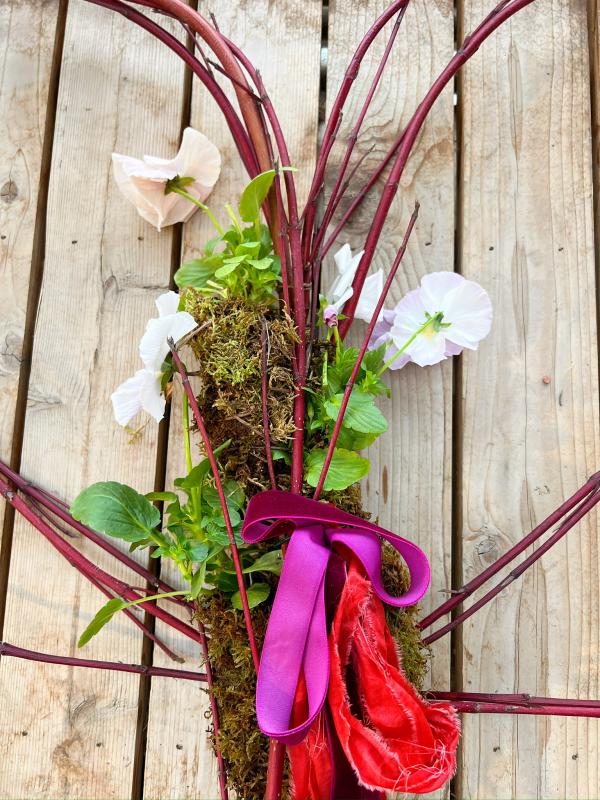 We will use red twig dog wood to make a heart shaped wreath form and then adorn the wreath with spring blooms in a style inspired by kokedama. All supplies and instruction provided.