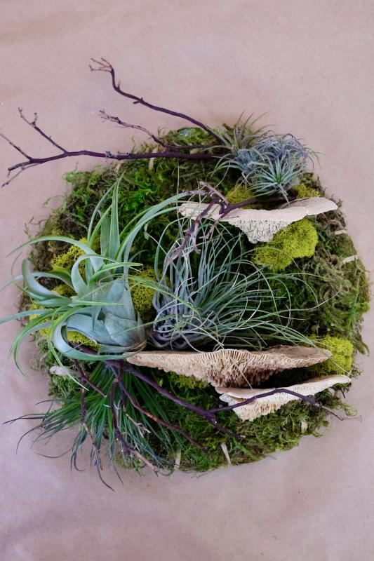 Create a forest inspired air plant hanging featuring mosses, mushrooms, lichen, air plants, and other accents — that sure to be a stunning focal point in your home! This is an advanced class.