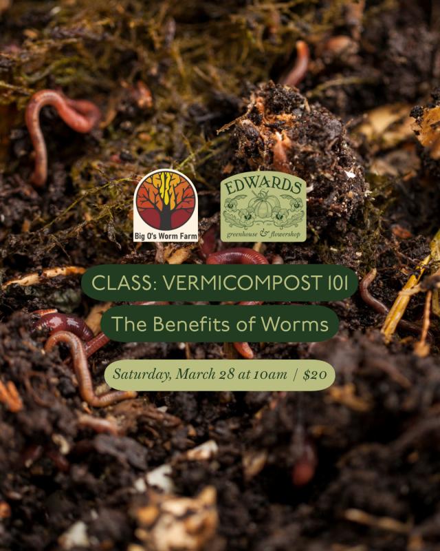 Come and learn the benefits of worm castings for your plants - worm castings can enhance your soil! We'll discuss red wiggler composting worms and the difference between compost and vermicompost.